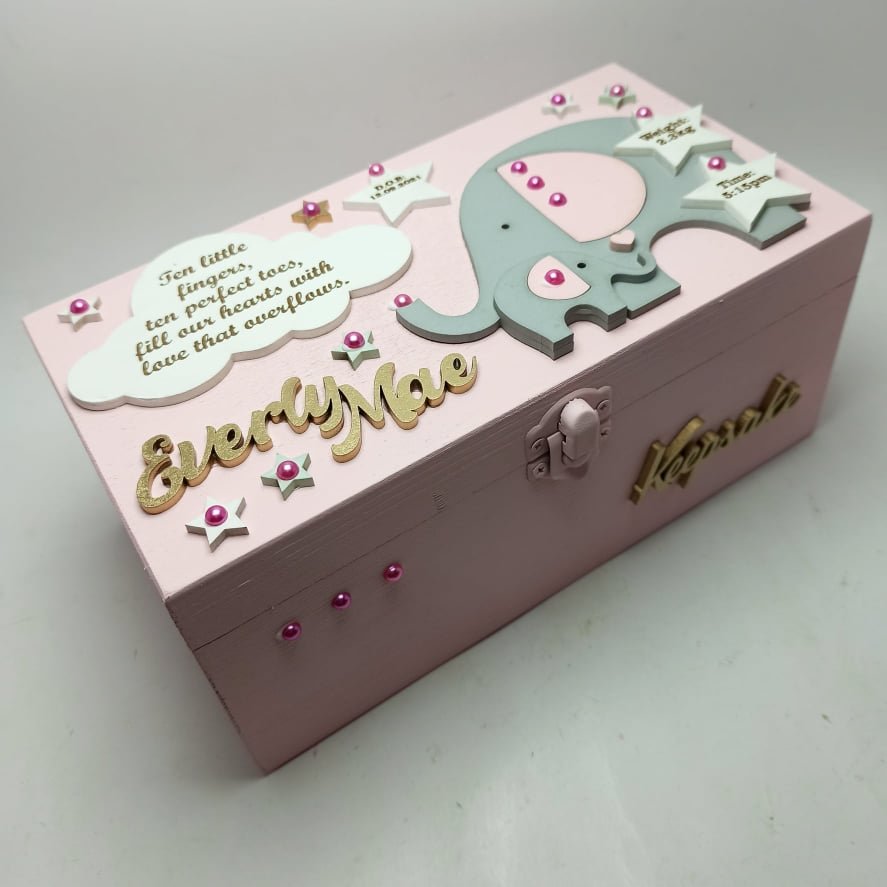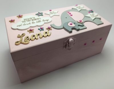 Keepsake Box – 20.5x11x9cm – Elephants & Stars Theme